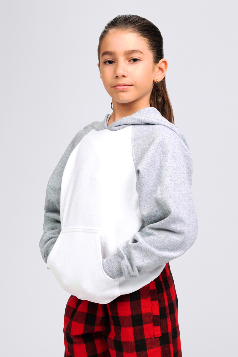 • Contrast color raglan sleeves and hood