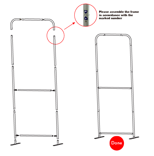 • Kit includes Hardware, Graphics and Carry Case. Assembly is very quick and this display is easy to travel with. Graphics are replaceable.