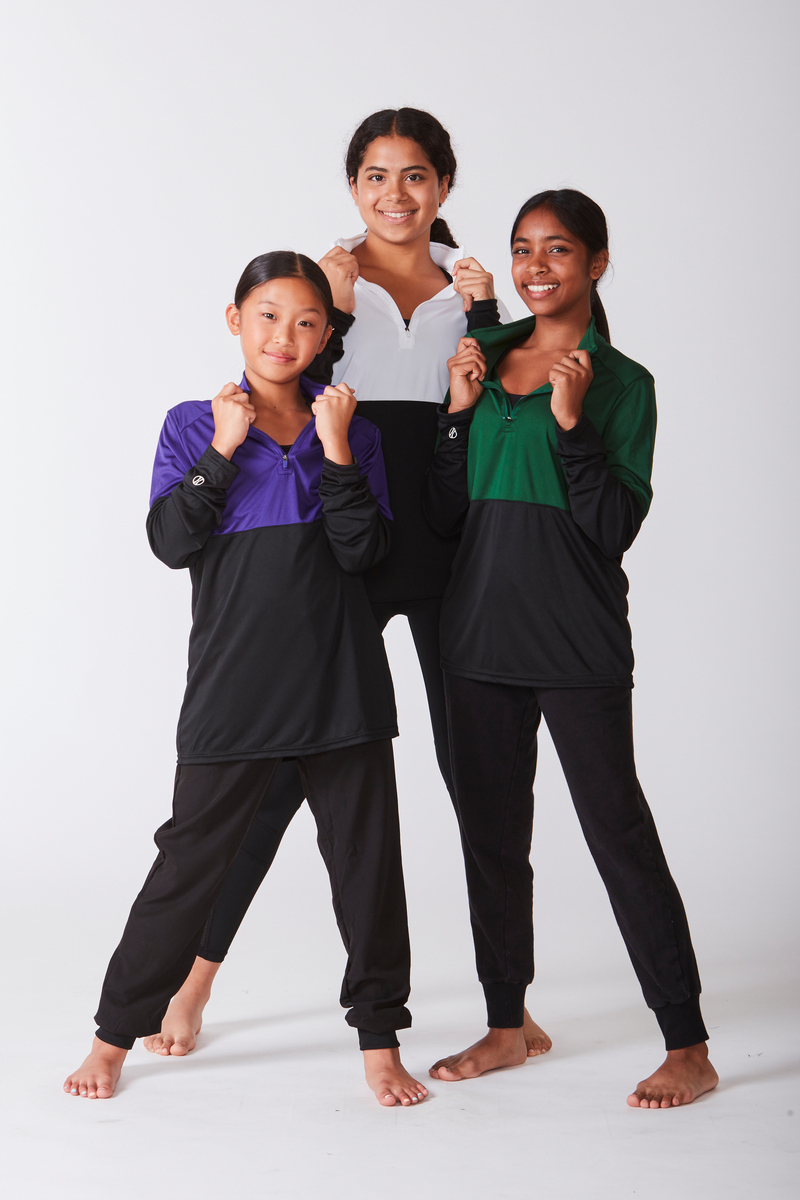 • Quarter zip pullover style with zipper garage