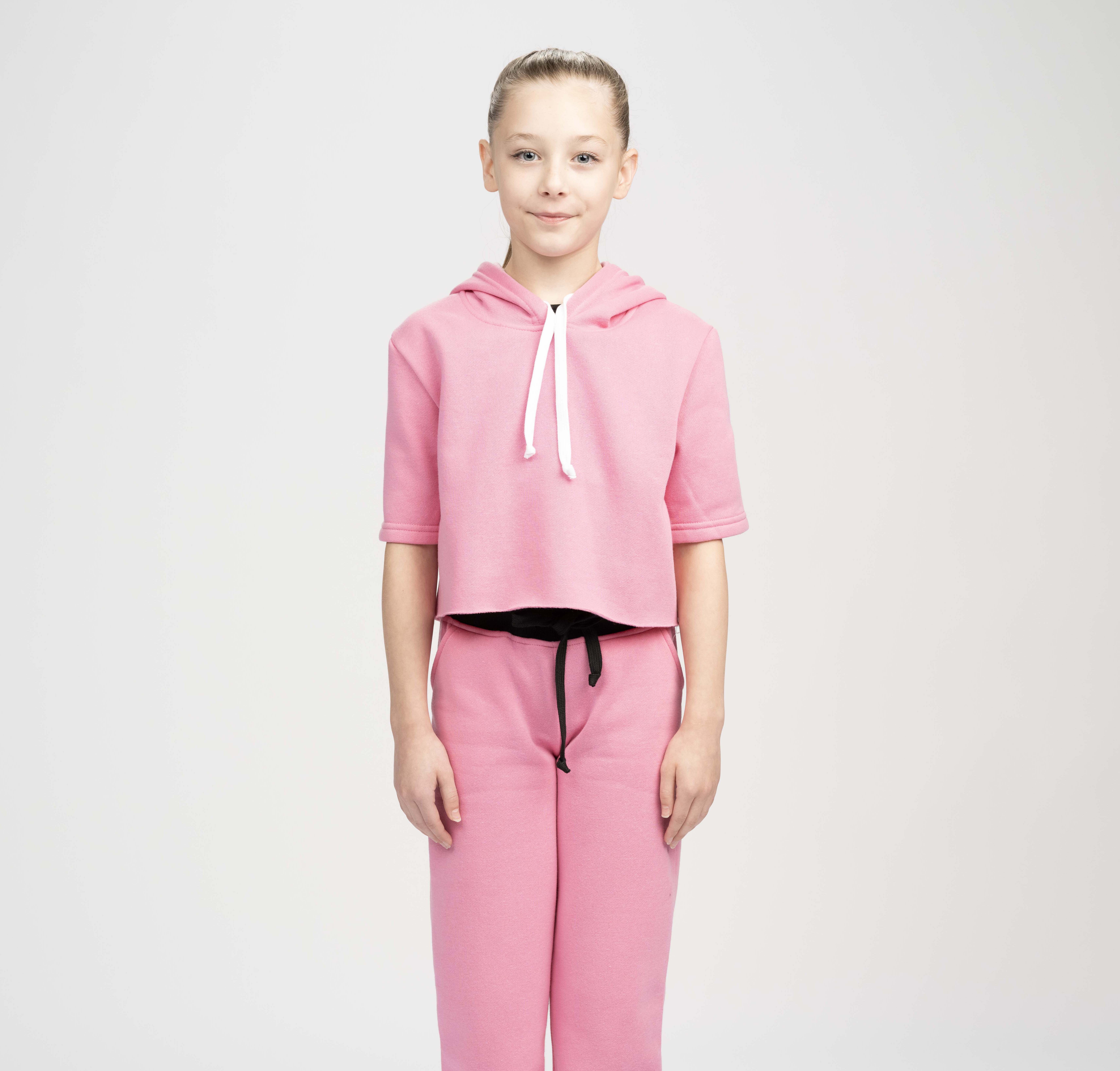 Studio Essentials Girls Short Sleeve Raw Edge Crop Hoodie