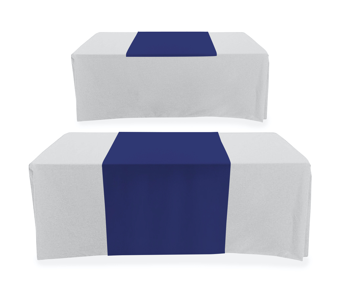 Table runners are made from durable fabric. Fits on any rectangular table. 4', 6', 8', 10' tables. Rolled edge finish. Lightweight, convenient for travelling and shipping. Usage: Presentations, trade shows, retail stores, events, school functions, fundraisers. Price includes full color perfect print. Max Imprint: 25"W x 20"H (Regular Print) ; 25" x 27"H (Jumbo Print). Jumbo print add on running charge $33.33 (c ). No additional setups.