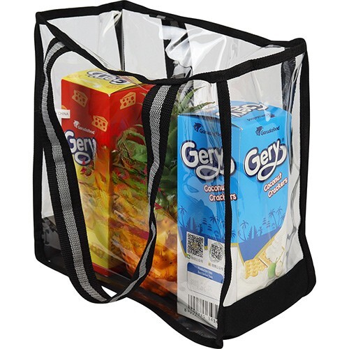 • Clear tote is trimmed with durable woven canvas for a contemporary look